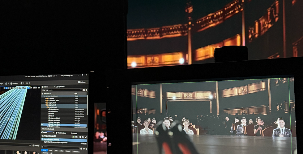 After we got feedback from mentors, we decided to change our transition to a directional dissolve in shot 2-3. The backdrop dissolves upward and the curtain follows. After we take the shot with this effect on stage, we are going to implement a sparkling effect along the line of transition by compositing.